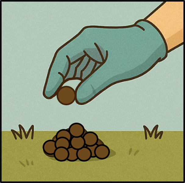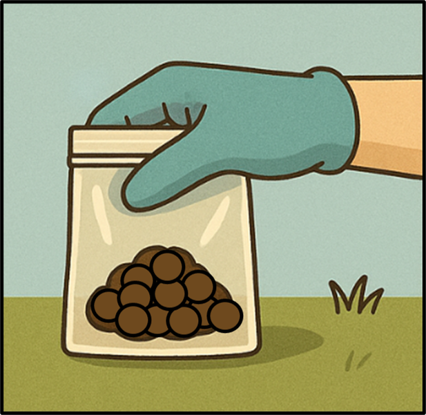 This is a pro-tip for the most accurate result. Don’t just grab the pellets from the top. Use the glove provided to take pellets from different areas of the pile. This gives a much better average of the entire dropping. Avoid picking up soil, bedding, or sand as these can contaminate the sample.